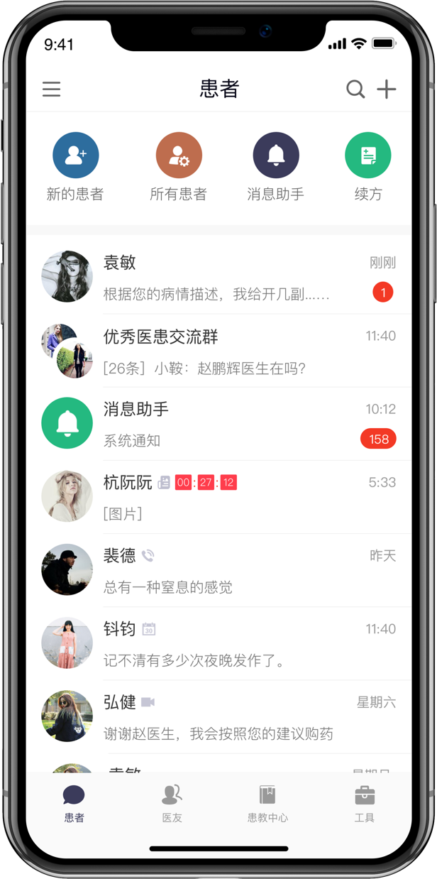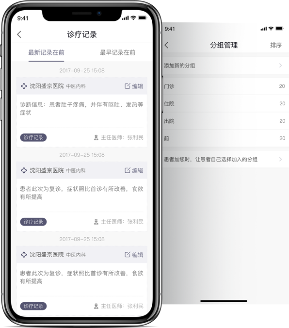 可视化管理患者历史病例、处方、健康档案,并可对患者进行群组、标签、分组等分类管理